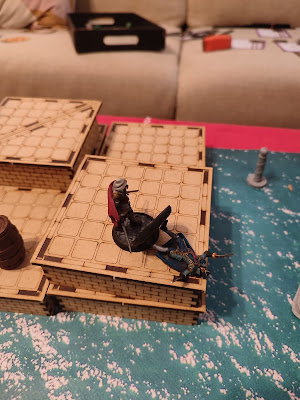 Este último escenario que jugamos fue el de "Cazadores y Presas". Aunque me llevo una impresión muy positiva, al igual que con el escenario de "Proteger al VIP" me da la sensación de que en este los puntos se disparan rápidamente. Cuando un jugador consigue varios trofeos con un modelo y luego consigue ponerlo a salvo, es muy complicado para el rival remontar. Se me ocurre que quizás pudiera añadir una condición para que cada modelo pierda un trofeo por turno si no han conseguido ninguno ese mismo turno, evitando de esta manera que se dé la situación anterior. Sea como sea, con el pequeño inconveniente de tener que tener muchos tokens a mano para representar los trofeos, me parece un escenario bastante adecuado para torneos.